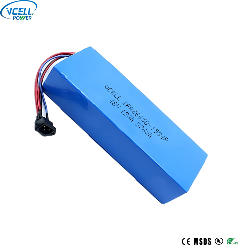 Akumulator Vcell 48V 12Ah 26650 Ebike LiFePO4 to profesjonalne rozwiązanie do magazynowania energii zaprojektowane specjalnie do zastosowań wymagających zarówno wysokiej wydajności, jak i najwyższego bezpieczeństwa. Wykorzystując standaryzowane ogniwa LiFePO4 26650, pakiet wykorzystuje naukowo zoptymalizowaną konfigurację 15S4P, aby precyzyjnie spełniać wymagania systemu o napięciu znamionowym 48 V, zapewniając idealną równowagę pomiędzy pojemnością energetyczną a mocą wyjściową. Idealnie nadaje się do urządzeń służących do poruszania się, takich jak rowery elektryczne, małe pojazdy elektryczne i hulajnogi. Ponadto służy jako doskonałe źródło zasilania dla szerokiej gamy innych zastosowań, w tym do magazynowania energii w domu i przemyśle, systemów magazynowania energii słonecznej PV, zasilania awaryjnego stacji bazowej komunikacji, zasilaczy awaryjnych UPS i elektronarzędzi. Ten zestaw akumulatorów stanowi idealne rozwiązanie w zakresie zasilania, oferując wyjątkowe połączenie niezawodności i opłacalności.